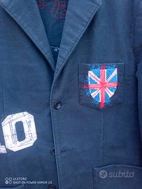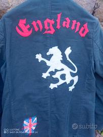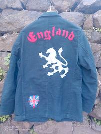 Rara e particolare giacca in panno anni 90 BB London con patches e ricami a tema football