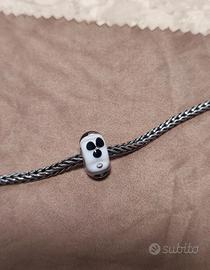 Beads Trollbeads con motivo floreale bianco e nero in argento sterling 925 e vetro di Murano.