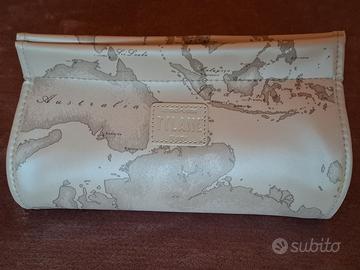 Beauty Alviero Martini Prima Classe Tessuto GEO bianco grigio Made in Italy Apertura a strappo. In perfette condizioni, mai usata Mis. cm 22 x 14