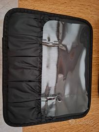porta pennelli incluso con plastica richiudibile sopra le setole per non rovinali e non sporcare il resto del beauty.