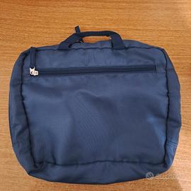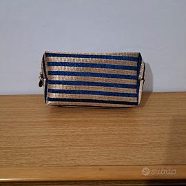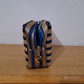 Lotto composto da un Beauty case blu "xl" (nuovo) + una Pochette marca "Le Kikke" color blu/oro glitter (come nuova), vendute insieme per far risparmiare sulla spedizione. BEAUTY CASE da viaggio in tessuto, cm. 33x28, color blu navy, 2 tasche grandi con zip (una frontale esterna+una interna), 2 tasche interne con retina (una grande+una suddivisa in tre parti piccole), morbido, capiente ma leggero, perfetto in valigia. POCHETTE a strisce orizzontali blu/oro glitter, cerniera in metallo con zip, interno foderato, cm. 25x14x7 marca "Le Kikke", perfetto per cerimonie o serate eleganti.