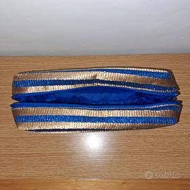 Beauty case blu + Pochette blu/oro glitter.