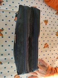 Colore: blu notte. Con tre tasche. Dimensioni: 28 x 16 x 10 cm.