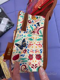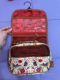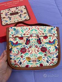 Beauty case da viaggio con un vivace design ispirato a Frida Kahlo. Perfetto per organizzare gli articoli da toeletta durante i viaggi. Esterno impermeabile e gancio per essere appeso. Nuovo e inutilizzato.