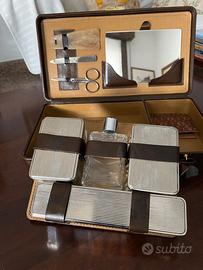 Elegante valigetta beauty case in pelle completa di spazzola, porta sapone e porta spazzolino, porta profumo/dopobarba, calzascarpe, forbicina e lima per unghie, specchietto