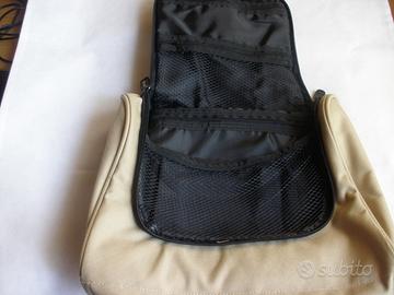 Coppia di beauty case da viaggio Navigare, con manico per trasporto, colori beige e nero, in tessuto tela, numerose tasche interne, misure 25x25x10 cm.