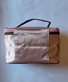 Beauty case in tessuto con fantasia a pois.