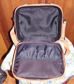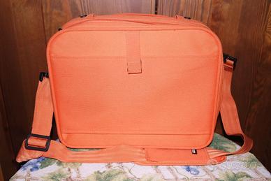 Beauty Case o borsa da viaggio United Colors Of Benetton, arancione, in cotone, a mano e tracolla con spallaccio imbottito, semirigida, interni foderati, ampie tasche interne de esterne (si vedano le foto). Piccola scucitura nello spallaccio facilmente riparabile. In dotazione il suo lucchetto originale con le istruzioni.