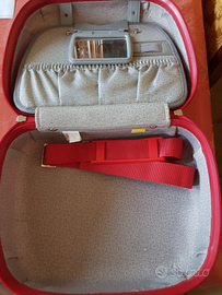 Vendo beauty case rigido, colore rosso. Divisorio interno, tracolla amovibile.