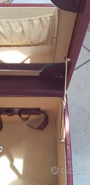 Beauty case porta trucchi da viaggio rigido, rivestito in pelle Bordeaux, con chiusura con chiave, ottimo stato.