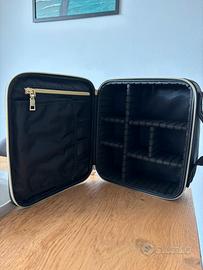Beauty case rigido, colore nero, dimensioni 25x23 cm, con scomparti interni che possono anche essere rimossi a piacere, dotato di zip come in foto. Utilissimo per viaggi o per conservare trucchi o gioielli. Perfetto stato.