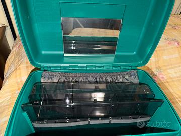 BEAUTY CASE DELLA DELSEY - COFANETTO RIGIDO IN PLASTICA DI COLORE VERDE. L'OGGETTO NON E' MAI STATO USATO ED E' COMPRENSIVO DELLE CHIAVI DI CHIUSURA. L'INTERNO POSSIEDE I SUOI SCOMPARTI E IL SUO SPECCHIO PER IL TRUCCO. LA VALIGETTA E' A FORMA RETTANGOLARE, IN PLASTICA RIGIDA E DI COLORE VERDE. ALTEZZA CM. 24,5 LARGHEZZA CM. 22 LUNGHEZZA CM. 36