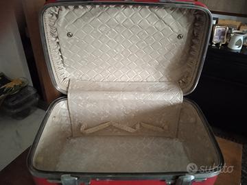 Beauty case vintage, anni '60 circa, American Tourister originale. Colore: rosso lipstick, serratura cromata funzionante, completo di chiave ed etichetta originali. Vassoio porta trucco assente.
