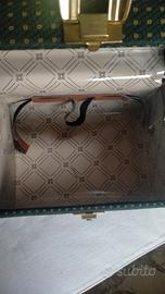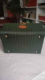 Elegante beauty case vintage in perfette condizioni, usato solo una volta, con chiusura dotata di chiavetta, colore verde scuro e marrone, misure cm 28 x 21 e alto cm 20 ( escluso il manico)