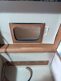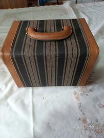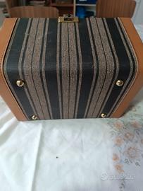 beauty case vintage da viaggio, rigido con maniglia specchio all.interno e laccio per fermare gli accessori