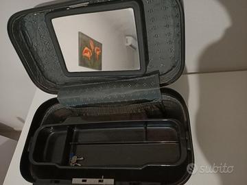 Beauty case vintage Roncato rigido anni 80.In policarbonato nerocon chiusura con combinazione e chiavi.All'intermo:uno specchio orientabile,una tasca in tessuto,un separé in plastica fumé.Usato,ma in ottime condizioni.Consegna a mano,solo Olbia.