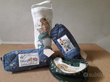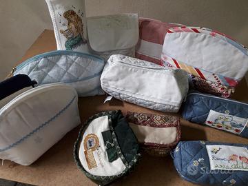 POCHETTE E TROUSSE NON RICAMATE: ideali per conservare in borsa o in casa cosmetici, prodotti da toilette o piccoli oggetti, sono realizzate in cotone leggermente trapuntato, con inserti in tela aida per ricamo a punto croce.