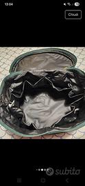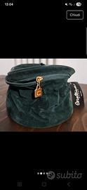 Beautycase Corallina Milano, in velluto, con manico. Beauty bag, un piccolo scrigno da viaggio. Nuovo con cartellino. Dimensioni cm 22 x 16 x H 12. Ampio, portaoggetti all'interno. Organizer interno, struttura semirigida ed elegante, raffinato.