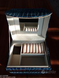 Elegante beautycase con fantasia effetto coccodrillo, ideale per custodire gioielli o piccoli oggetti.