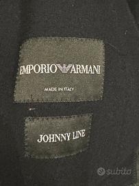 I bottoni sono tutti marchiati Emporio Armani con il simbolo Armani, il tessuto è 100% lana e ha uno spacco dietro per facilitare la camminata