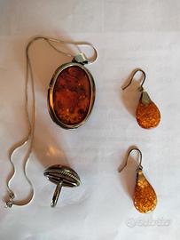 Vendo questa bellissima parure in ambra del Baltico nuova montata in argento a prezzo ingrosso, orecchini di 7 GR. anello di 11 GR. ciondolo di 25 GR. catenella lunga 45 cm. di 4 GR. in negozio questa parure costa € 350 Ca. vero affare con consegna solo a mano. Bigiotteria, oro, argento, gioielli, brillanti.