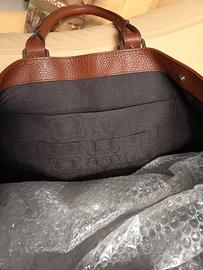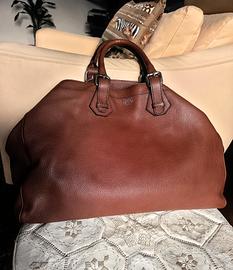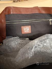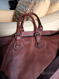 Bellissima, di ottima pelle, molto grande e capiente. con tracolla e tasche interne. Misure : frontale cm . 33x38 , lato cm. 17x33 , base cm 17x48.