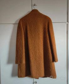 Caldo cappotto vintage da donna color senape. In misto lana (57% e 25% mohair ~ si veda composizione in etichetta), foderato all'interno.