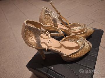 bellissime scarpe col tacco 10, dorate, comode, raffinate, num 40