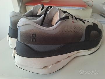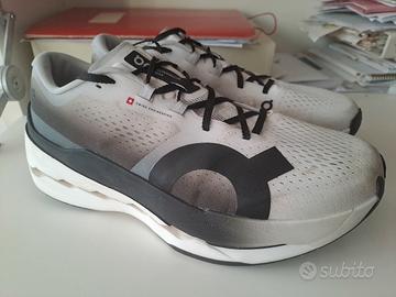 Bellissime On Running Cloudboom Max 11,5-46 bianco e nero usate poche volte sporche ma perfettamente integre vendo quasi ad un terzo del prezzo senza scatola originale e altri accessori