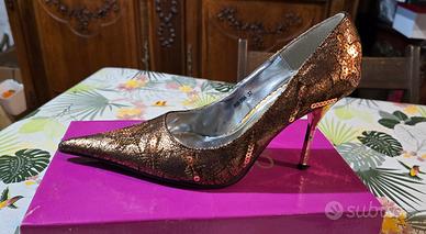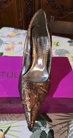 Queste bellissime scarpe sono state indossate una sola volta in occasione di un matrimonio. Veramente particolari ed eleganti. Direi anche piuttosto comode vista la punta ed il tacco. Contattatemi per qualsiasi domanda.