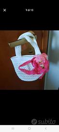 Svendo bellissimo vestito da cerimonia da bimba con coprispalle e borsetta bello ampio con velo colore rosa e bianco contattare senza impegno per altre info prezzo affare regalo scarpe da cerimonia bianche
