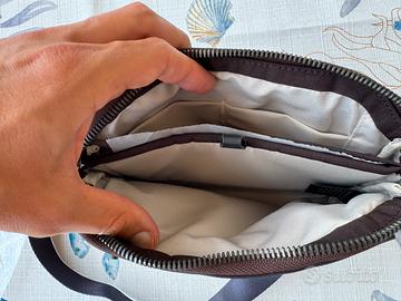 NUOVO-MAI USATO COLORE Deepplum-PRUGNA-VIOLA Caratteristiche: Capacità espandibile Tasca posteriore con cerniera nascosta Ampio accesso Divisorio interno imbottito Tasca centrale Tasche a bustina in rete elasticizzata Spallacci regolabili e rimovibili Dettagli in pelle di qualità Elementi in metallo personalizzato Lunghezza cinghia: 85 cm al minimo / 144 cm al massimo Materiale principale: Baida Ripstop Tasca interna a bustina per Apple AirTag Capienza 1 L Peso 239g Dimensioni esterne 160 × 220 × 60 mm Materiali Utilizziamo tessuti provenienti da fonti riciclate come bottiglie di plastica PET, ritagli di nylon industriale e reti da pesca.