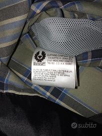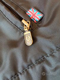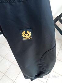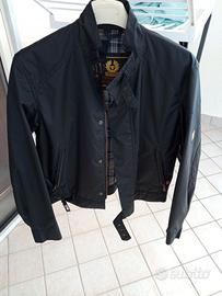 Giacca Belstaff originale corta in nylon e cotone( interno) con cinturino sia al collo che in vita.Due cerniere lampo permettono di regolare la larghezza,tasche con cerniere sulle maniche,Chiusura a bottoni e con cerniera.Articolo originale mai indossato.Disponibili foto dettagliate con misure.Il prezzo è già scontatissimo per cui è solo LEGGERMENTE TRATTABILE.