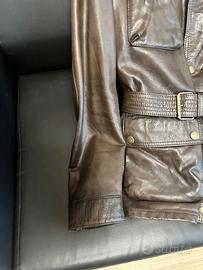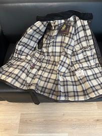 Giacca realizzata al 100 x 100 in pelle di alta qualità. Classico modello con cintura con classica fodera a quadri, collo fibbia regolabile, quattro tasche a soffitto, bottoni automatici.