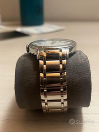 Movimento: Automatico svizzero (calibro Baume & Mercier, visibili rotore e bilanciere), funzione data, riserva marcia ~38 ore;