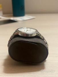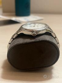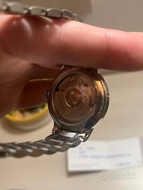 L’orologio è in eccellenti condizioni, usato in poche occasioni, con fondello esposto che mostra rotore automatico Baume & Mercier inciso, bracciale privo di graffi significativi e corona a vite integra e legata. Quadrante immacolato senza ossidazione, lancette luminose uniformi e vetro zaffiro antigraffio integro; lieve polvere interna tipica di conservazione lunga ma non critica. Non lucidato.
