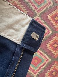 Pantaloncini shorts modello bermuda della Dickies, nell'iconica colorazione Blu Navy. Un pezzo essenziale per chi ama lo stile workwear, skate e streetwear. Il tessuto è il classico twill Dickies: ultra resistente, mantiene bene la piega e dura una vita. Dettagli tecnici: Taglia: 33 US (veste circa una 48 italiana). Chiusura: Gancio metallico logato e zip robusta (vedi foto dettaglio). Tasche: Due laterali capienti e due posteriori a filo. Logo: Etichetta Dickies classica sopra la tasca posteriore destra. Condizioni: Ottime, il capo è stato tenuto con cura, non presenta macchie o segni di usura particolari. Misure indicative (prese in piano): Vita: circa 42-43 cm. Ideali per un look casual o urban. Capo versatile e indistruttibile. 📦 Spedizione rapida e imballaggio curato!