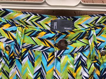 Vendo bellissimo pantalone bermuda vintage a vita alta in tessuto di cotone in stupendi colori tipici del brand TG. 42/30 originali Missioni, in ottime condizioni generali senza alcun segno.