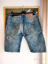Bermuda denim con strappi e lavaggio chiaro, 5 tasche, chiusura frontale con zip e bottone. Lunghezza appena sopra il ginocchio.