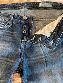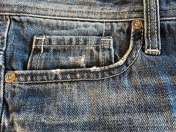 Bermuda jeans slavati con effetto strappato sulle tasche. Indossati poche volte, ben tenuti. Misura M
