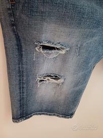 Shorts/Bermuda Uomo "OFFICINE BRUNO LEONI - 1955" - Denim Strappato Effetto Usurato - Taglia 48 / W34