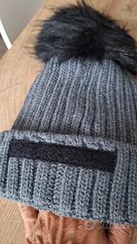 vendo barrette nuove J.B4 un berretto nero e uno grigio con pon pon eco pelliccia con lettere, simboli e numeri da applicare con velcro dietro