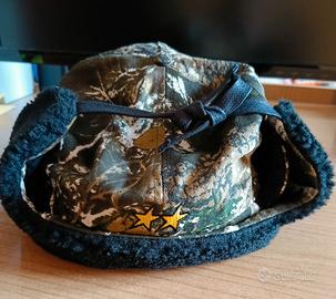 Berretto con para orecchie, colore verde militare giallo e nero, con laccetti