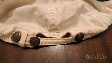 Usato e con vari difetti come parti scucite e macchie di ruggine, ma ancora perfettamente indossabile.
