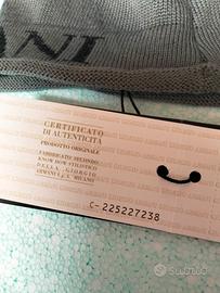 Buongiorno, vendo berretto Emporio Armani mod. Beanie vintage, color grigio in la na WO, tessuto esclusivo italiano di alta qualità. Nuovo, con cartellini ancora attaccati, unisex, molto bello, diverso dai soliti, grazie per l'attenzione.