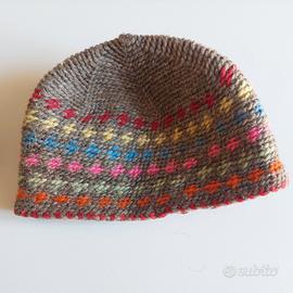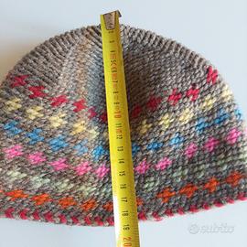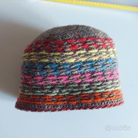 Berretto cappello in lana lavorazionne artigianale. Lana piuttosto spessa, resistente. Mai indossato. In foto anche il rovescio e le misure. Ne ho due in vendita. Nessun difetto, buco, macchia o segno evidente di usura, il berretto proviene da una casa in cui non è consentito fumare e non sono presenti animali domestici.