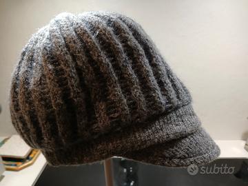 Berretto invernale con frontino in lana mohair grigio a costone con fiore laterale. Made in Italy. Mai usato. Molto bello e caldo.