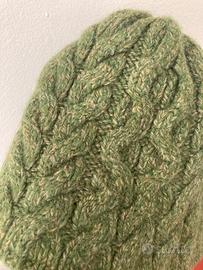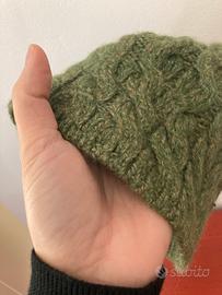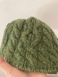 Caldo berretto verde Made in Ireland (ho scucito etichetta perché in vista, ma credimi sulla parola, è stato acquistato a Dublino). Morbido e caldo, in lana e angora, vendo perché modello piccolo, adatto a teste piccole o da bambini - controlla misure in foto. Indossato 2/3 volte, lavato a mano con cura e pronto per essere indossato. Il colore reale è il bel verde prato nelle foto con fondo bianco.