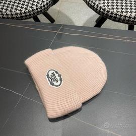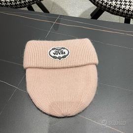 Cappello in lana lavorato a maglia rosa PRADA autunno e inverno 2024, un lusso leggero. Un must-have per le uscite invernali.