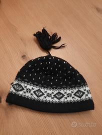 berretto mountain style in merinos/acrilico. nero e bianco con ponpon penzolante. made in Italy. usato pochissimo.